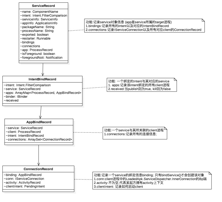 - AppBindRecord.connections: 某个service的所有绑定信息会记录在该对象;